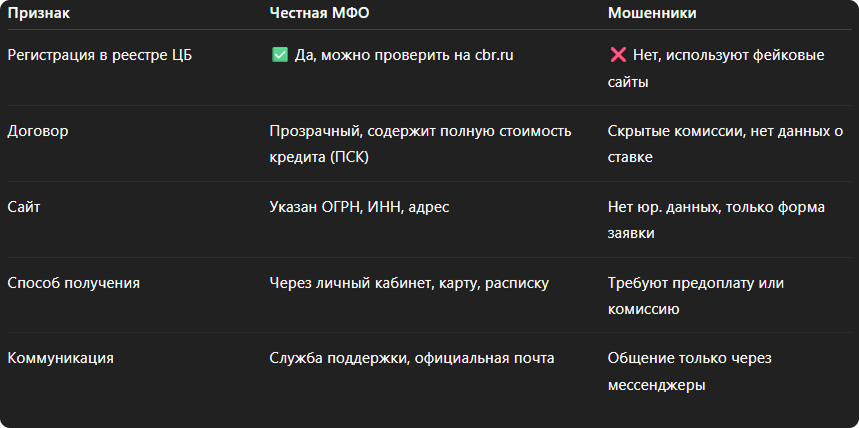 ⚠️ Как отличить честную МФО от мошенников